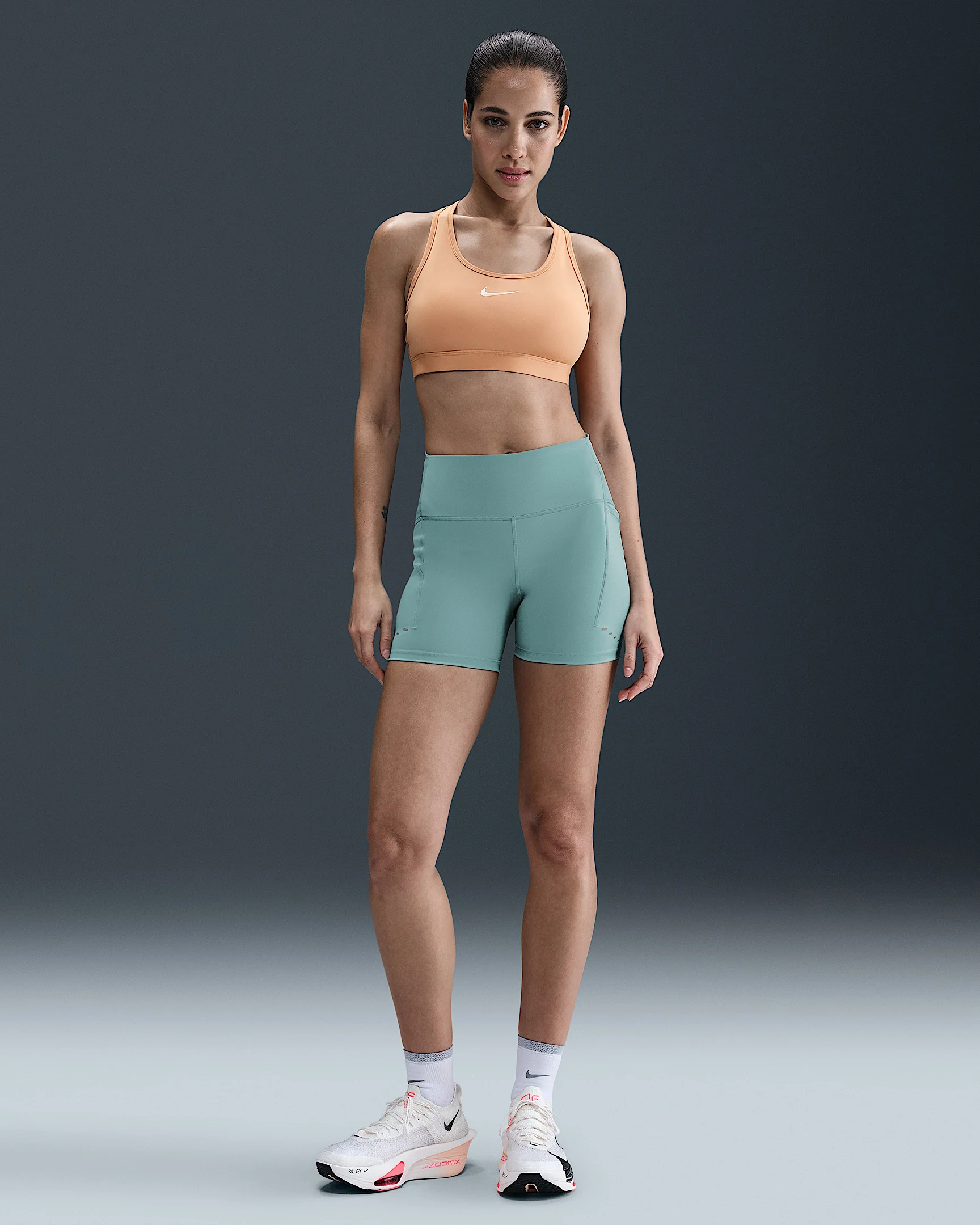 Using insights from runners like you, we prioritized functionality to refresh our Swift essentials. These midweight, sweat-wicking biker shorts are seamless on the inner legs to help reduce chafing. Three pockets store your essentials so you can rack up your miles with everything you need close by. Product Details - Reflective Swoosh logo on center back - Reflective graphics on outer thighs - Not intended for use as Personal Protective Equipment (PPE) - Internal drawcord - Body/Panels lining: 75% polyester/25% spandex - Machine wash - Imported - Shown: Cannon - Style: HJ2258-017 SIZE & FIT Model is wearing size S and is 5′9″175cm Tight fit: snug and form-fitting Medium support: feels ke a snug hold to keep everything in place High-Waisted: sits at or above your natural waist for more coverage