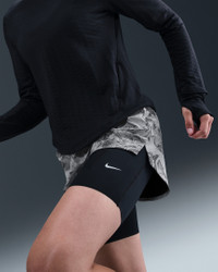 Day or night, stay ready in these Swift running shorts. Their smooth, structured fabric is reflective and the stretchy inner shorts wick sweat to help keep you dry. Three different pockets secure your phone while the 2-in-1 design gives you optimal coverage stride after stride. Benefits - Back zip pocket plus two side pockets on inner shorts fit most phones. - Breathable elastic mesh waistband with internal drawcord gives you a secure fit. - Raw cut hem on inner shorts helps reduce chafing. - Lightweight, built-in shorts wick sweat and offer extra coverage. Product Details - Reflective outer shorts material - Not intended for use as Personal Protective Equipment (PPE) - Hem vents on outer shorts - 7" inner shorts inseam - 2.5" outer shorts inseam - Body: 100% polyester. Tight: 83% polyester/17% spandex. - Machine wash - Imported - Shown: Thunder Grey/Dark Smoke Grey/Black - Style: HV2916-036 SIZE & FIT Model is wearing size S and is 5′9″175cm Standard fit: easy and traditional