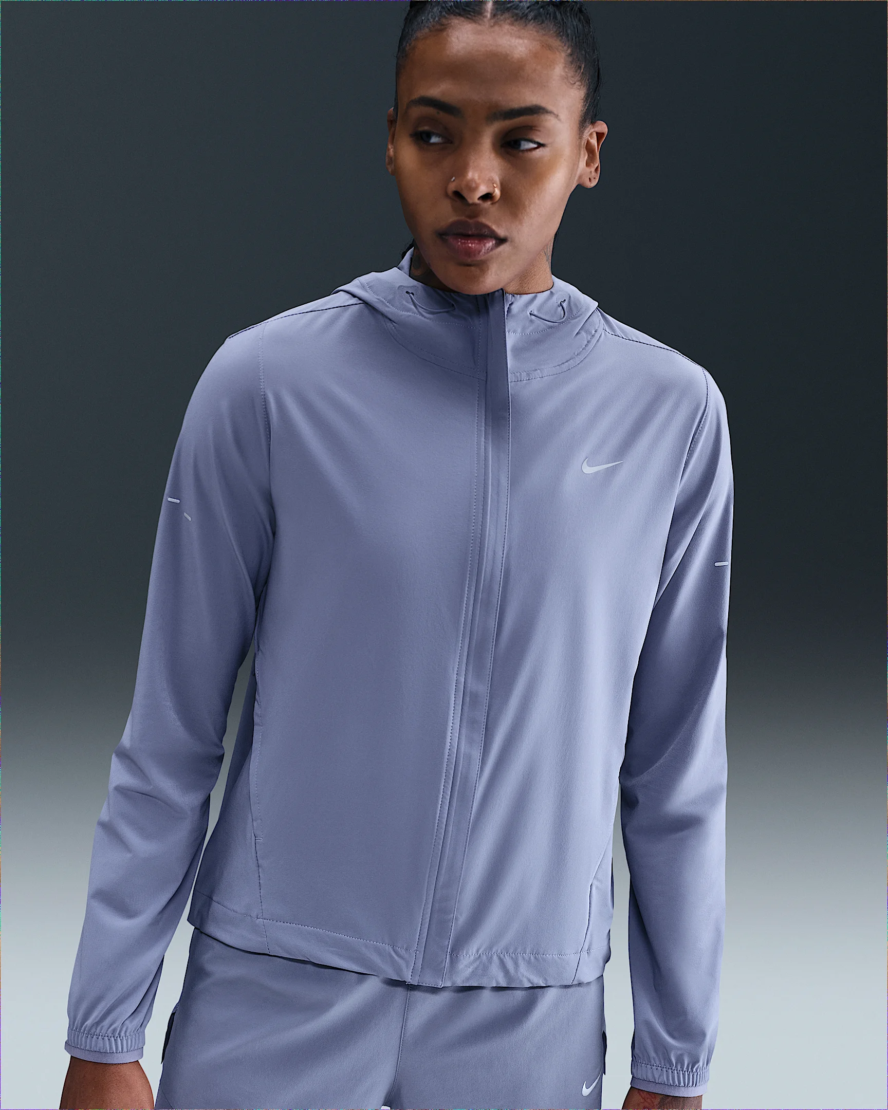 Using insights from runners like you, we prioritized functionality to refresh our Swift essentials. This lightweight, packable jacket has been designed to help reduce chafing and improve breathability. A whistle at the collar is easy to access, and a water-repellent finish and built-in UV protection help keep you covered come rain or shine. Product Details - Reflective Swoosh logo on left chest - Reflective graphics on sleeves and back - Not intended for use as Personal Protective Equipment (PPE) - This product provides UVA and UVB protection from the sun in the areas covered by the garment. To protect exposed areas, the use of good quality sunscreen is recommended. - Whistle at collar - Body: 80% polyester/20% spandex. Mesh: 100% polyester. - Machine wash - Imported - Shown: World Indigo - Style: HQ0650-499 SIZE & FIT Standard fit: easy and traditional
