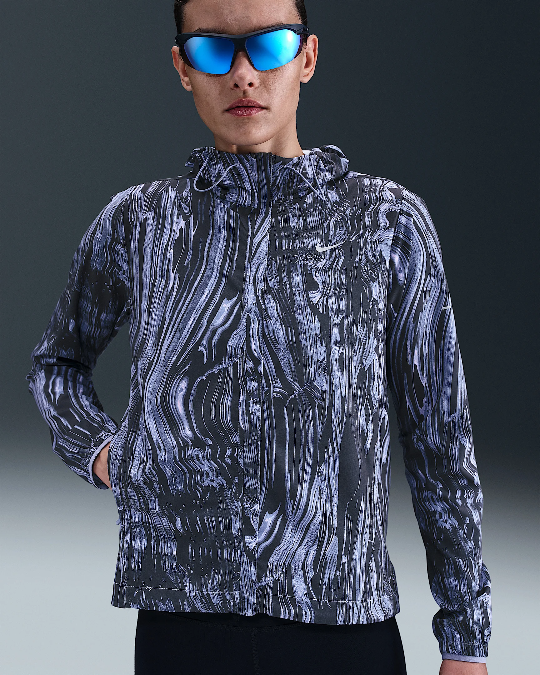 Our Swift running jacket checks all the boxes. It's lightweight, water-repellent and offers UV protection. Designed to help reduce chafing and improve breathability, it helps keep you comfortable mile after mile. More Benefits - Back mesh vent helps moisture escape. - Whistle at collar is easy to access. Product Details - Reflective details - Not intended for use as Personal Protective Equipment (PPE) - Elastic at cuffs - Locker loop - Zipper flap - This product provides UVA and UVB protection from the sun only in the areas covered by the garment. To protect exposed areas, the use of good quality sunscreen is recommended. - Body: 80% polyester/20% spandex, Mesh: 100% polyester. - Machine wash - Imported - Shown: World Indigo - Style: IM0361-499 SIZE & FIT Model is wearing size S and is 5′9″175cm Standard fit: easy and traditional