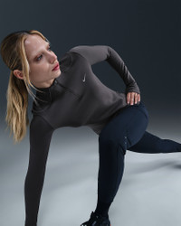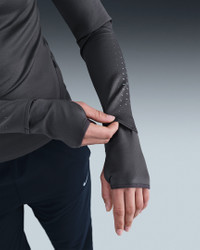 Day or night, stay ready for chilly temps in this heat-regulating Swift top. The incredibly soft, cozy fabric offers warmth while the reflective details add a pop to your path. Benefits - Nike Therma-FIT ADV technology combines heat-regulating fabric with advanced features to help keep you warm in cold-weather conditions. - Thumbholes let you extend your coverage and help hold the sleeves in place. - Watch windows on sleeves let you quickly check the time. - Zip pocket at side fits most phones. Product Details - Reflective details on front, back and sleeves - Reflective Swoosh logo - Not intended for use as Personal Protective Equipment (PPE) - Discreet zipper - 80% polyester/20% spandex - Machine wash - Imported - Shown: Thunder Grey/Black - Style: HV2944-036 SIZE & FIT Model is wearing size S and is 5′10″178cm Sm fit: sleek and tailored