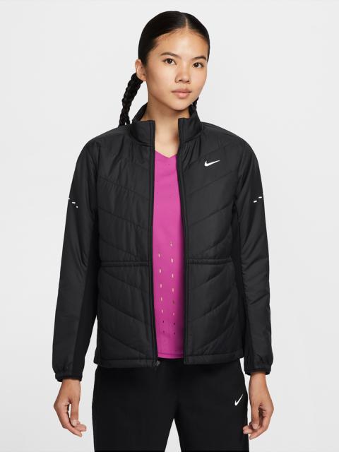 Don't let chilly temps stop you from running. A smooth, water-repellent shell teams up with synthetic insulation and a heat-regulating back panel to give you lightweight warmth in a made-to-move design. Benefits - Nike Therma-FIT technology helps manage your body’s natural heat to help keep you warm in cold-weather conditions. - Synthetic fill helps keep you insulated and warm. - Drawcord at the waist lets you cinch in the jacket for a more tailored fit. - Brushed knit back panel offers the stretch you need for easy movement. - Zippered side pockets offer secure storage for small essentials. Product Details - Body/Lining/Fill/Back of panels fabric: 100% polyester. Face of panels fabric: 82% polyester/18% spandex. - Reflective details - Whistle at collar - Not intended for use as Personal Protective Equipment (PPE) - Machine wash - Imported - Shown: World Indigo - Style: HV2744-499 SIZE & FIT Model is wearing size S and is 5′7″170cm Standard fit: easy and traditional