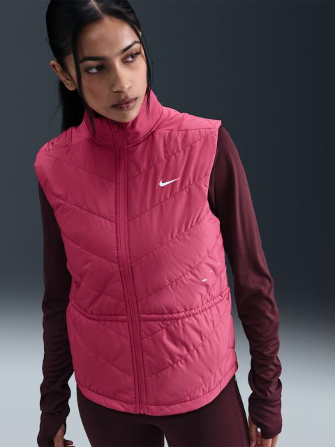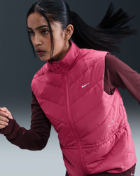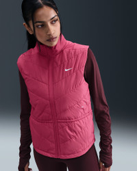 Don't let chilly temps stop you from running. A smooth, water-repellent shell teams up with synthetic insulation and a heat-regulating back panel to give you lightweight warmth in a made-to-move design. Benefits - Nike Therma-FIT technology helps manage your body’s natural heat to help keep you warm in cold-weather conditions. - Synthetic fill helps keep you insulated and warm. - Drawcord at the waist lets you cinch in the vest for a more tailored fit. - Brushed knit back panel offers the stretch you need for easy movement. - Zippered side pockets offer secure storage for small essentials. Product Details - Body/Lining/Fill/Back of panels fabric: 100% polyester. Face of panels fabric: 82% polyester/18% spandex. - Reflective details - Whistle at collar - Not intended for use as Personal Protective Equipment (PPE) - Machine wash - Imported - Shown: Sweet Beet - Style: HV2655-634 SIZE & FIT Model is wearing size S and is 5′7″170cm Standard fit: easy and traditional