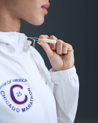 Celebrate the Bank of America Chicago Marathon in this lightweight jacket. Its water-repellent and UV-blocking fabric is paired with a print on the back that's inspired by the windy city's iconic transit system. Benefits - Water-repellent finish helps keep you dry in wet weather. - Modified raglan sleeves are designed to help reduce underarm chafing and allow for a wider range of motion. - A mesh vent on the back helps moisture escape. - Jacket packs into its own pocket for compact carrying. Product Details - Two front zip pockets - This product provides UVA and UVB protection from the sun only in the areas covered by the garment. To protect exposed areas, the use of good quality sunscreen is recommended. - Body: 80% polyester/20% spandex. Mesh: 100% polyester. - Machine wash - Imported - Shown: White - Style: HQ4305-100 SIZE & FIT Model is wearing size S and is 5′9″175cm Standard fit: easy and traditional