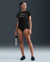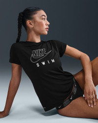 It's your sport. Make sure everyone knows in this classic Nike tee with sun protection and Dri-FIT technology. Benefits - This product is made with at least 75% recycled materials. - Nike Dri-FIT technology moves sweat away from your skin for quicker evaporation, helping you stay dry and comfortable. - This product provides UVA and UVB protection from the sun in the areas covered by the garment. Any closures must be fastened to give full UPF protection. It will not protect areas that are fully exposed. To protect these areas, the use of good quality sunscreen is recommended. - Internal neck tape is soft against the skin while you conquer the sand, salt and sun. Product Details - Heat Transfer Swoosh - Body: 100% recycled polyester - MACHINE WASH COLD SEPARATELY. - DO NOT DRY CLEAN - Imported - Shown: Black - Style: NESSF326-001 SIZE & FIT Model is wearing size S and is 5′9″175cm