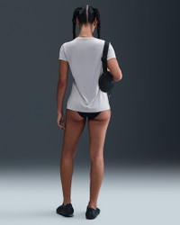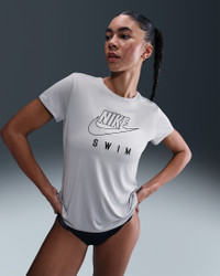 It's your sport. Make sure everyone knows in this classic Nike tee with sun protection and Dri-FIT technology. Benefits - This product is made with at least 75% recycled materials. - Nike Dri-FIT technology moves sweat away from your skin for quicker evaporation, helping you stay dry and comfortable. - This product provides UVA and UVB protection from the sun in the areas covered by the garment. Any closures must be fastened to give full UPF protection. It will not protect areas that are fully exposed. To protect these areas, the use of good quality sunscreen is recommended. - Internal neck tape is soft against the skin while you conquer the sand, salt and sun. Product Details - Heat Transfer Swoosh - Body: 100% recycled polyester - MACHINE WASH COLD SEPARATELY. - DO NOT DRY CLEAN - Imported - Shown: Light Smoke Grey - Style: NESSF326-079 SIZE & FIT Model is wearing size S and is 5′9″175cm