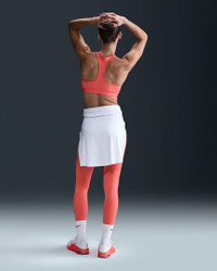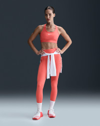 You're on the move. Your padding shouldn't be. This Swoosh bra's sewn-in pads stay in place so you can work hard without worrying about them shifting or folding. Great for training workouts and dance classes, medium support gives you a snug hold that helps keep everything in place. Plus, sweat-wicking, adaptive material quickly recovers its shape so you can stay comfortable throughout your workout. Product Details - Body: 72% polyester/28% spandex. Mesh: 81% polyester/19% spandex. Back lining: 72% polyester/28% spandex. Pad back fabric: 100% polyester. Pad: 100% polyurethane. - Machine wash - Imported - Shown: Magic Ember/White - Style: DX6821-814 SIZE & FIT Model is wearing size S Model height: 5′10″178cm Model bust: 34″86cm Tight fit: snug and form-fitting Medium support: feels ke a snug hold to keep everything in place