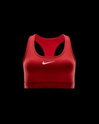 You're on the move. Your padding shouldn't be. This Swoosh bra's sewn-in pads stay in place so you can work hard without worrying about them shifting or folding. Great for training workouts and dance classes, medium support gives you a snug hold that helps keep everything in place. Plus, sweat-wicking, adaptive material quickly recovers its shape so you can stay comfortable throughout your workout. Product Details - Body: 72% polyester/28% spandex. Mesh: 81% polyester/19% spandex. Back lining: 72% polyester/28% spandex. Pad back fabric: 100% polyester. Pad: 100% polyurethane. - Machine wash - Imported - Shown: University Red/White - Style: DX6821-657 SIZE & FIT Model is wearing size S Model height: 5′10″178cm Model bust: 32″81cm Tight fit: snug and form-fitting Medium support: feels ke a snug hold to keep everything in place Fits large; we recommend ordering a size down