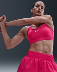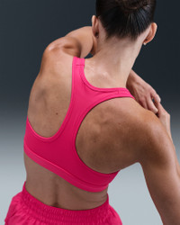 You're on the move. Your padding shouldn't be. This Swoosh bra's sewn-in pads stay in place so you can work hard without worrying about them shifting or folding. Great for training workouts and dance classes, medium support gives you a snug hold that helps keep everything in place. Plus, sweat-wicking, adaptive material quickly recovers its shape so you can stay comfortable throughout your workout. Product Details - Body: 72% polyester/28% spandex. Mesh: 81% polyester/19% spandex. Back lining: 72% polyester/28% spandex. Pad back fabric: 100% polyester. Pad: 100% polyurethane. - Machine wash - Imported - Shown: Rush Pink/White - Style: DX6821-666 SIZE & FIT Model is wearing size S Model height: 5′10″178cm Model bust: 34″86cm Tight fit: snug and form-fitting Medium support: feels ke a snug hold to keep everything in place