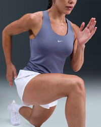 When you want it all, this tank is the pick. The iconic Swoosh bra is built in and smooth, stretchy fabric snuggly holds you, so you're set with everything you need to go from the office to the gym and back again. With sewn-in padding and a racerback silhouette, you can feel confident that nothing is shifting as you go about your day. Product Details - Body: 82% polyester/18% spandex. Bra mesh: 81% polyester/19% spandex. Elastic: 65% nylon/35% spandex. Bra mesh lining: 81% polyester/19% spandex. Pad top fabric: 100% polyester. Pad: 100% polyurethane. Pad back fabric: 100% polyester. - Machine wash - Imported - Shown: World Indigo/White - Style: DV9897-499 SIZE & FIT Model is wearing size S Model height: 5′6″168cm Model bust: 32″81cm Tight fit: snug and form-fitting Medium support: feels ke a snug hold to keep everything in place Fits small; we recommend ordering a size up