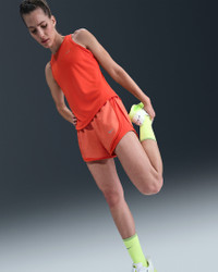 Find your rhythm in these lightweight Tempo shorts. Smooth, sweat-wicking fabric helps you stay dry while mesh panels offer ventilation with every stride. Benefits - Nike Dri-FIT technology moves sweat away from your skin for quicker evaporation, helping you stay dry and comfortable. - Drop-in pocket on brief liner fits a card or key. - Soft seams on brief liner help reduce chafing. Product Details - Body/Lining: 100% polyester - Machine wash - Imported - Elastic waistband with internal drawcord - Reflective Swoosh logo on left thigh - Not intended for use as Personal Protective Equipment (PPE) - Shown: Picante Red/Heather/Picante Red - Style: HM6096-633 SIZE & FIT Model is wearing size S and is 5′10″178cm Standard fit: easy and traditional