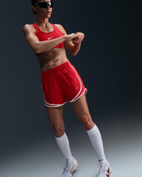 Find your rhythm in these lightweight Tempo shorts. Smooth, sweat-wicking fabric helps you stay dry while mesh panels offer ventilation with every stride. Benefits - Nike Dri-FIT technology moves sweat away from your skin for quicker evaporation, helping you stay dry and comfortable. - Drop-in pocket on brief liner fits a card or key. - Soft seams on brief liner help reduce chafing. Product Details - Body/Lining: 100% polyester - Machine wash - Imported - Elastic waistband with internal drawcord - Reflective Swoosh logo on left thigh - Not intended for use as Personal Protective Equipment (PPE) - Shown: University Red/University Red/White - Style: HM6096-657 SIZE & FIT Model is wearing size S and is 5′10″178cm Standard fit: easy and traditional