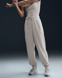 Cozy up in these loose-fitting pants. Ultrasoft, lightweight fleece is brushed on both sides for all-around fuzzy comfort, so you can feel like you're wrapped in your favorite blanket as you head to the gym on chilly days—or when you're ready to relax afterward. An elastic waistband with a drawcord lets you find your perfect fit, while heat-regulating tech helps keep you warm on your entire fitness journey. Benefits - Nike Therma-FIT technology helps manage your body’s natural heat to help keep you warm in cold-weather conditions. - Pockets provide quick storage for keys, phone and cold hands. - Drawcord helps you dial in your perfect fit. - Elasticized cuffs and waistband provide secure and comfortable fit. Product Details - 100% polyester - Machine wash - Imported - Shown: Light Orewood Brown/Pale Ivory - Style: FB5578-104 SIZE & FIT Model is wearing size S and is 5′10″178cm Loose fit: roomy and relaxed Fl length: hits below ankle