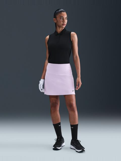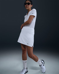 With advanced sweat-wicking tech and stretchy built-in shorts, this long golf skirt offers comfortable coverage. Multiple pockets give you plenty of storage for your game essentials. Benefits - Nike Dri-FIT ADV levels up our sweat-wicking technology with advanced cooling and zones of breathability to help you stay dry and comfortable. - Drop-in pockets on both legs of inner shorts fit most phones. - Back waistband pocket can hold your pencil and scorecard. Product Details - Body/Waist lining/Gusset lining: 100% polyester. Tight: 80% polyester/20% spandex. - Machine wash - Imported - Shown: White/Black - Style: FZ6312-100 SIZE & FIT Model is wearing size S and is 5′10″178cm Standard fit: easy and traditional