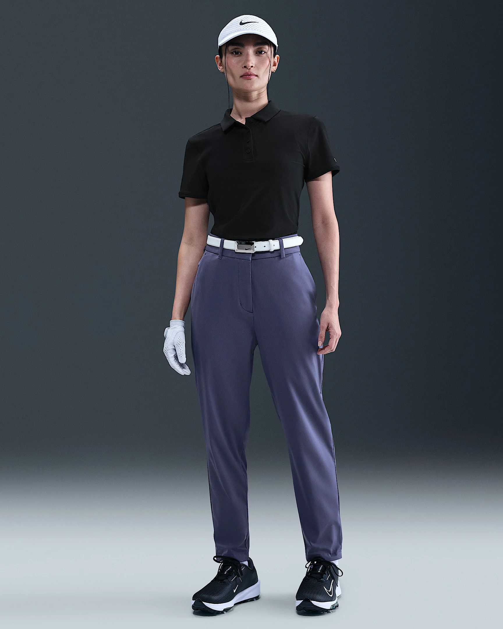 Stride confidently onto the course in these sleek, sweat-wicking pants. With plenty of storage and stretch, you'll feel cool and collected as you line up your shot and take your swing. Benefits - Nike Dri-FIT technology moves sweat away from your skin for quicker evaporation, helping you stay dry and comfortable. - Front and back drop-in pockets store your essentials, like gloves or extra balls. - Hook-and-bar closure and zippered fly create a smooth polished look. Product Details - Belt loops - Elastic waistband - Swoosh logo - Body: 81% nylon/19% spandex. Mesh: 100% polyester. - Machine wash - Imported - Shown: Sanded Purple/White - Style: IH7487-508 SIZE & FIT Model is wearing size S and is 5′7″170cm Standard fit: easy and traditional Fl length: hits below ankle