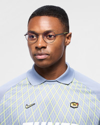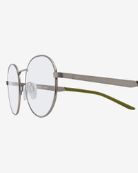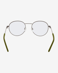 Made for everyone and designed for every day, the Nike Traveler Drift Blue Light frame combines premium quality with sleek metal frames for dependable durability. The classic round shape features adjustable nose pads, while the silicone-wrapped, color-block temples add a touch of Nike's signature sport detail. Featuring a premium coating that helps reduce blue light exposure for use at home, in the office, and during gaming sessions on your digital devices. Benefits - Helps combat digital eye strain with blue-light-reducing, anti-reflective (AR) coating. - Clear, premium lenses help reduce screen reflection. - 4-base flat lens provides slim profile - Slim profile balances style and comfort. Product Details - Scratch and smudge resistant - Lightweight, durable metal frame - UV protection against sun and environmental light - Lens Width 51mm - Bridge Width 20mm - Temple Length 145mm - Shown: Gunmetal - Style: IB3678X-923