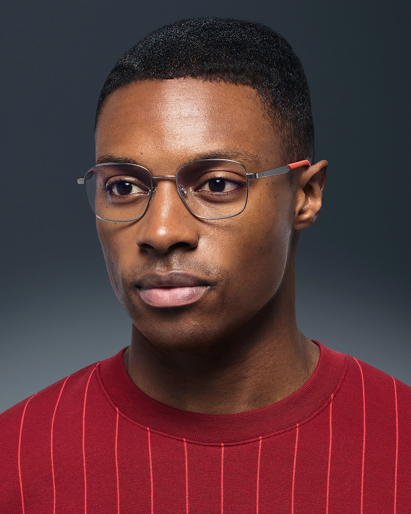 Made for everyone and designed for every day, the Nike Traveler Flow Blue Light frame combines premium quality with sleek metal frames for dependable durability. The roomy square shape features adjustable nose pads, while the silicone-wrapped, color-block temples add a touch of Nike's signature sport detail. Featuring a premium coating that helps reduce blue light exposure for use at home, in the office, and during gaming sessions on your digital devices. Benefits - Helps combat digital eye strain with blue-light-reducing, anti-reflective (AR) coating. - Clear, premium lenses help reduce screen reflection. - 4-base flat lens provides slim profile - Slim profile balances style and comfort. Product Details - Scratch and smudge resistant - Lightweight, durable metal frame - UV protection against sun and environmental light - Lens Width 53mm - Bridge Width 19mm - Temple Length 145mm - Shown: Silver/Picante Red - Style: IB3677X-054