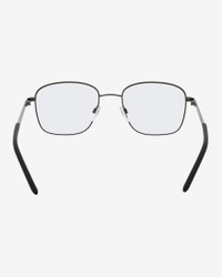 Made for everyone and designed for every day, the Nike Traveler Flow Blue Light frame combines premium quality with sleek metal frames for dependable durability. The roomy square shape features adjustable nose pads, while the silicone-wrapped, color-block temples add a touch of Nike's signature sport detail. Featuring a premium coating that helps reduce blue light exposure for use at home, in the office, and during gaming sessions on your digital devices. Benefits - Helps combat digital eye strain with blue-light-reducing, anti-reflective (AR) coating. - Clear, premium lenses help reduce screen reflection. - 4-base flat lens provides slim profile - Slim profile balances style and comfort. Product Details - Scratch and smudge resistant - Lightweight, durable metal frame - UV protection against sun and environmental light - Lens Width 53mm - Bridge Width 19mm - Temple Length 145mm - Shown: Gunmetal - Style: IB3677X-912