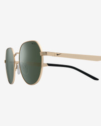 Made for everyone and designed for every day, the Nike Traveler Trend combines premium quality with sleek metal frames for dependable durability. The classic round shape features adjustable nose pads, while the silicone-wrapped, metal temples add a touch of Nike's signature sport detail. Benefits - Nike Max optics provide precise vision from all angles. - 4-base flat lens and slim profile provide everyday coverage. Product Details - Frame material is metal. - 100% UVA/UVB protection. - Frame size: 52mm lens width; 19mm bridge width; 145mm temple length - Shown: Gold - Style: IB3538X-700
