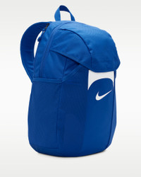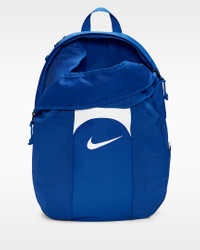 The weather doesn't keep you from practice, and it shouldn't keep you from having dry gear. Whether resting on the ground or hanging on a fence, this backpack handles less-than-ideal game and practice conditions—and holds your ball in the front pocket. The rain fly features Nike Storm-FIT technology to help provide extra coverage from the elements, while mesh on the bag allows breathability and ventilation on those good-weather days. Benefits - Nike Storm-FIT technology resists elements like wind and water to help keep you comfortable in harsh weather conditions. - Side pocket with hook-and-loop closure houses the rain fly. - Enlarged tech pocket provides space for your technology. - Padded shoulder straps are adjustable for a comfortable fit. Product Details - 19"H X 13"W X 7"D - Body: 90% polyester/10% nylon. Lining: 100% polyester. - Elongated zipper pulls - Spot clean - Imported - Shown: Game Royal/Game Royal/White - Style: DV0761-480