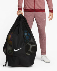 The Nike Club Team Ball Bag offers plenty of room to store all of the squad's soccer balls to and from practice. It features a flat bottom to keep it upright and steady, while padded straps give you hassle-free hauling. Benefits - Adjustable shoulder straps are padded for comfortable carrying. - Drawcord closure lets you quickly access your gear. - Lightweight mesh promotes ventilation. Product Details - 34" L x 17" H x 17" W - Lining: 100% polyester. Body: 88% polyester/12% nylon. - Spot clean - Imported - Shown: Black/Black/White - Style: BA5200-010
