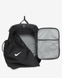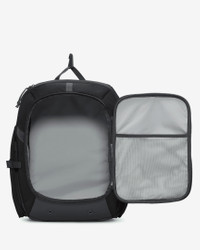 Make getting your gear to the diamond a home run with the Nike Diamond Bat Pack. The zippered main compartment is ideal for your mitt and helmet, while 2 side sleeves can hold up to 4 bats. An extra cleat bag with a clip gives you the option to carry your shoes on the outside of the bag. It's time to play ball! Benefits - Densely woven polyester provides heavyweight support. - Water-resistant bottom helps gear stay dry. - Cleat bag with clip allows for interior or exterior carrying options. - Stowable hook at the top of the bag allows you to hang your bag on a fence. Product Details - 100% polyester - Spot clean - Imported - Shown: Black - Style: N1009790-091