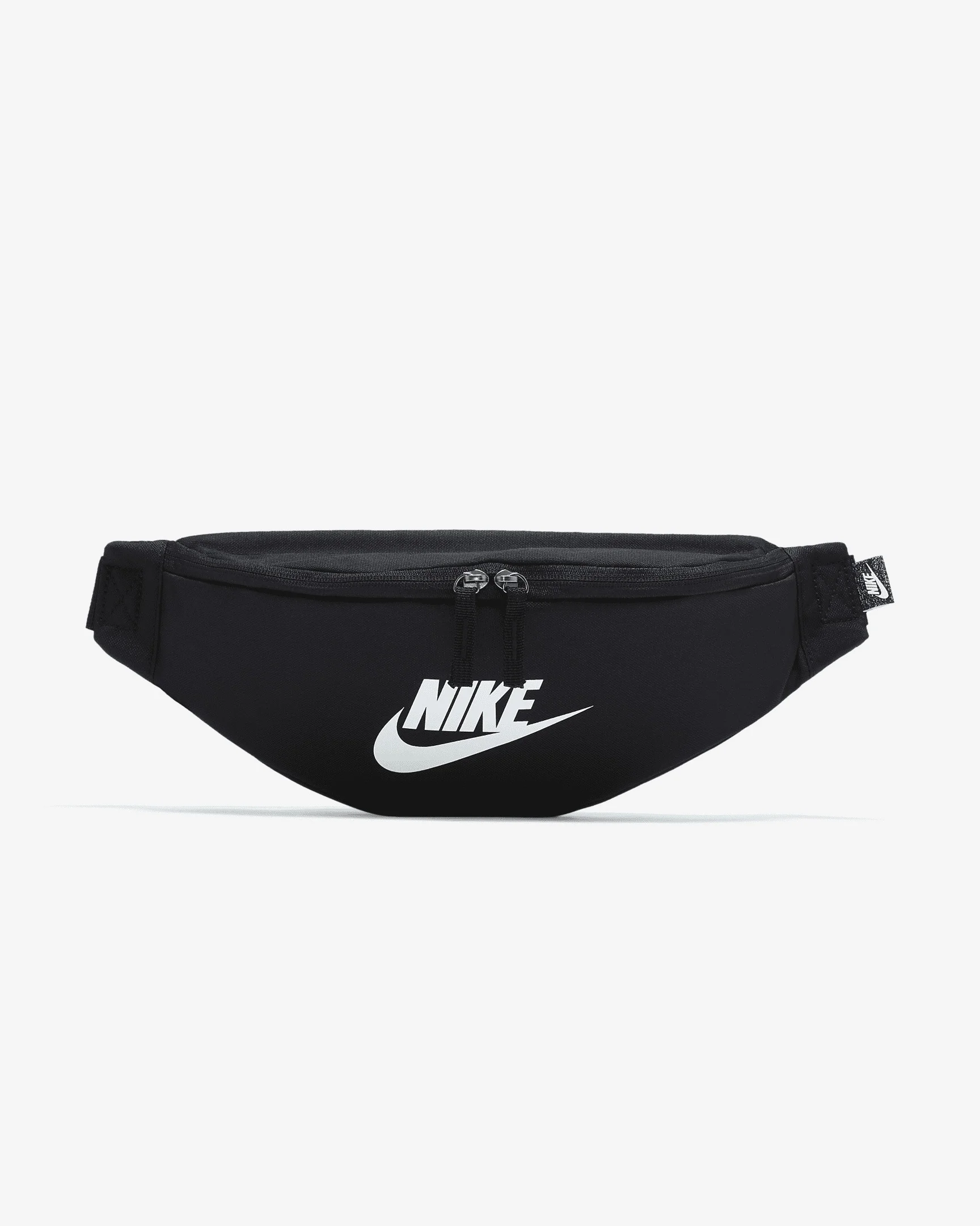 A comfortable and easy to adjust strap makes the Nike Heritage Waistpack a no brainer for everyday trips. The main compartment provides secure storage for your phone, snacks or wallet while the smaller accessories pocket on the backside helps keep things like your keys, travel info safe and close at hand. This product is made with at least 65% recycled polyester. Benefits - The buckle snaps together in the middle of the strap for a comfortable, easy-to-adjust fit. The bag can be worn at your waist, across your body or over your shoulder. - Dual-zipper on the front pocket provides easy access to larger items. - Dual-zipper on the back keeps smaller items stored securely. Product Details - 16"L X 4"W X 6"H - 3 L - 100% polyester - Spot clean - Imported - Shown: Black/Black/White - Style: DB0490-010