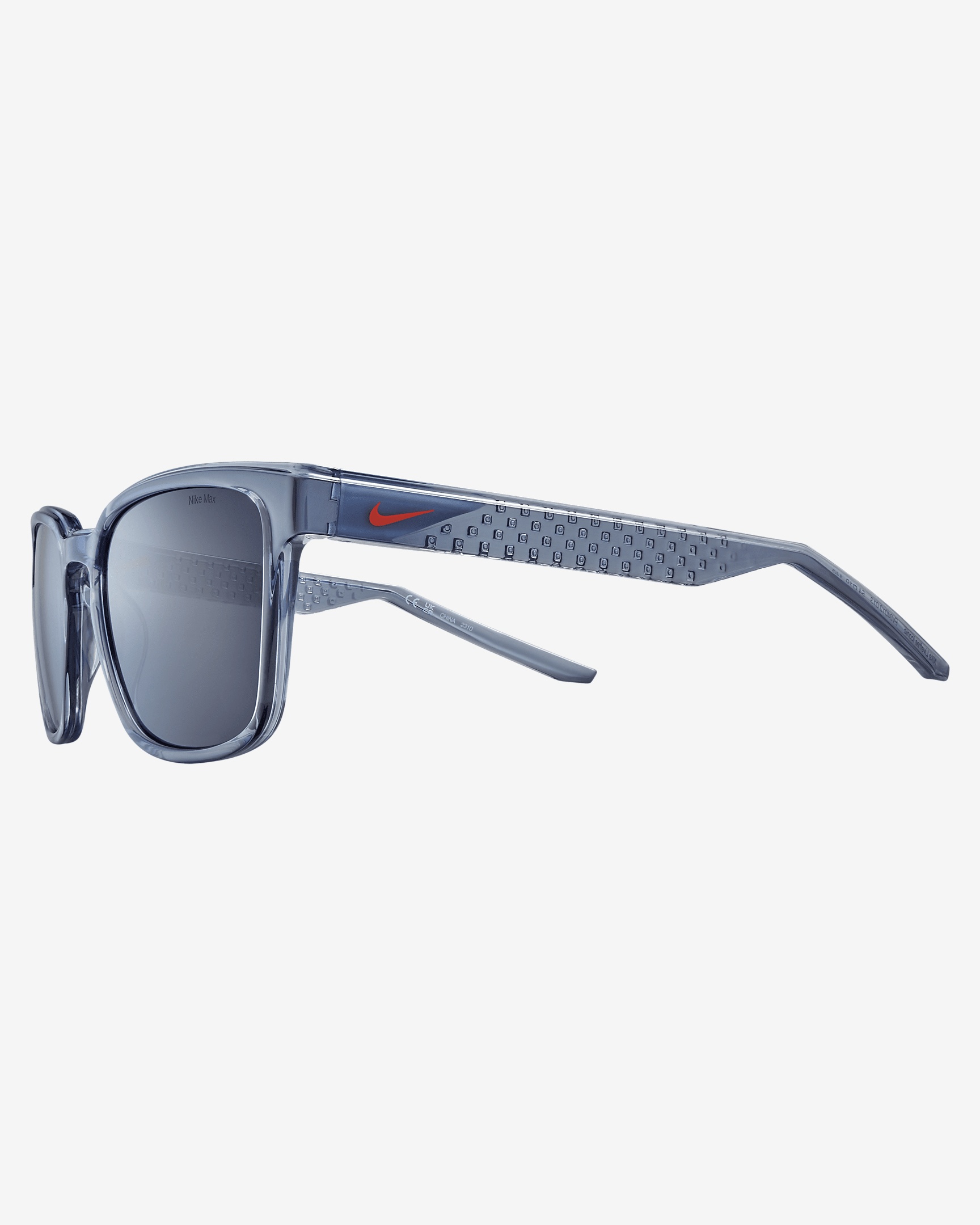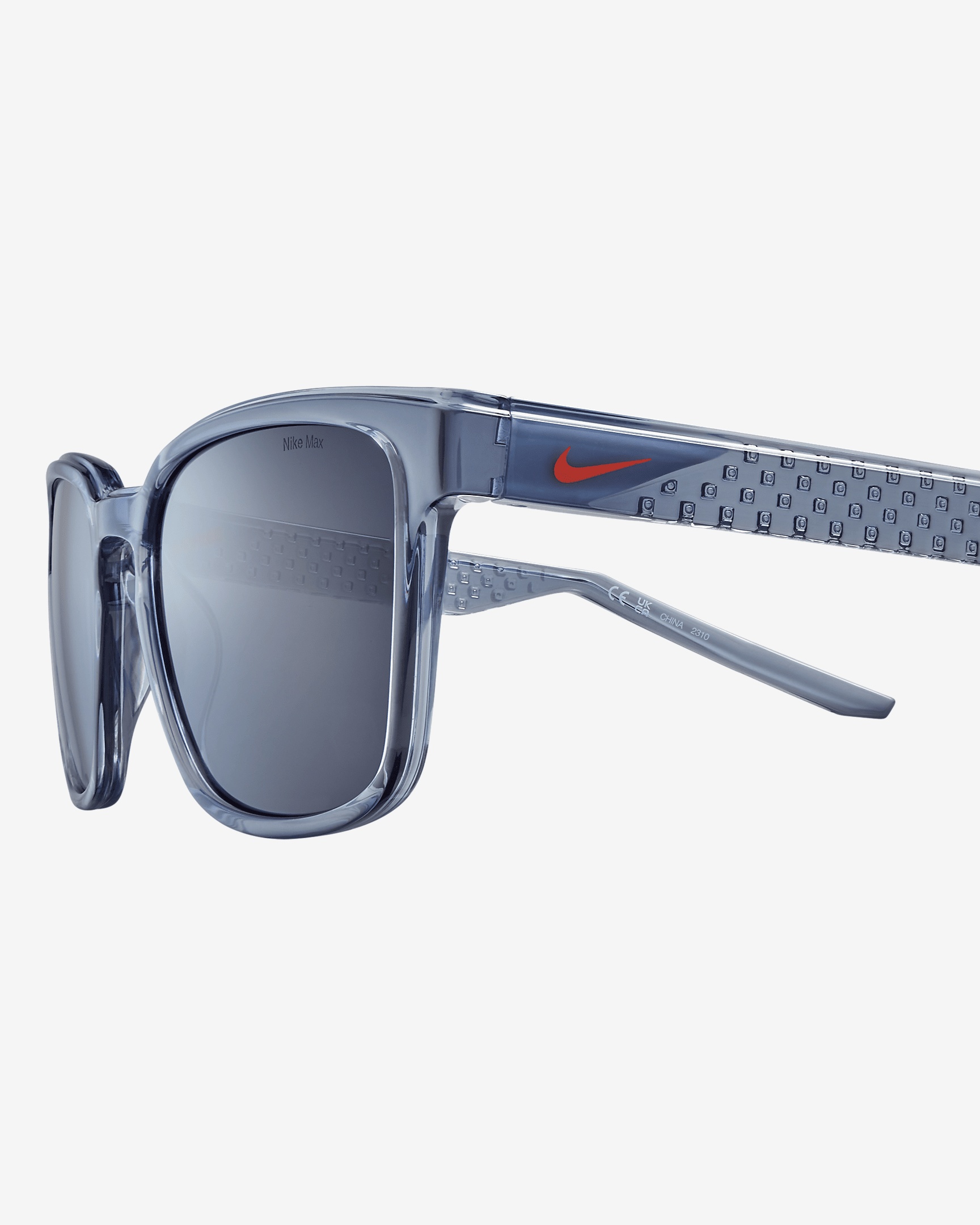 The Nike LiveFree Iconic Sunglasses elevate your outdoor look with a modern, oversized design featuring a dose of bold color and unexpected surprise on the temples: a texturized, waffle pattern on the outside and a positive “live free” mantra on the inside. Benefits - 4-base flat lens and slim profile provide everyday coverage. Product Details - Injected frame material is derived from at least 40% castor bean oil - Prescription-friendly frame - Waffle pattern on temples - 100% UVA/UVB protection - Shown: Ashen Slate/Navy - Style: NKEV24012-013