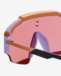 Reimagining sport shields for every day, the Marquee Edge Mirrored sunglasses offer panoramic views in an ultralight frame. The angular design accommodates a wide lens and has rubberized zones at the top bar, nose pad and temples to give you a grippy, stay-put fit while adding unexpected pops of bold color. Benefits - Lightweight, wraparound shield design adds coverage. - Adjustable temple arms with rubber sleeves give you optimal comfort. - Adjustable nose bridge provides a custom fit. - Rubberized zones offer enhanced grip. Product Details - 100% UVA/UVB protection - Measurements: 64-14-140 (Lens Width-Bridge-Temple Length) - Imported - Shown: Lilac Bloom/Rose Gold - Style: NKFN0300-519