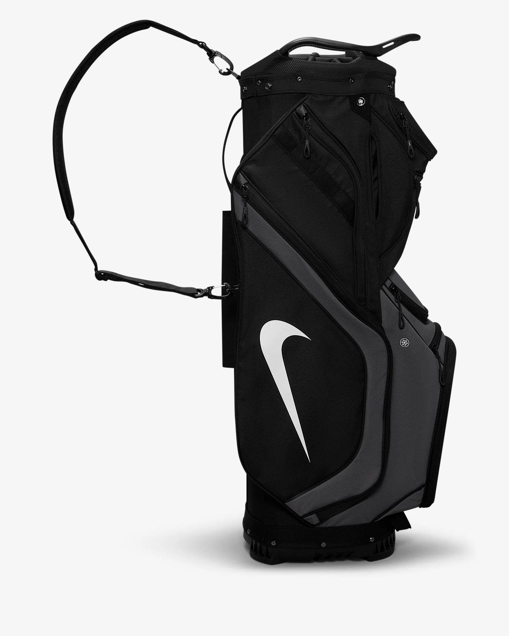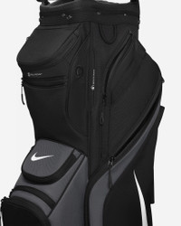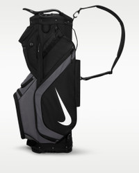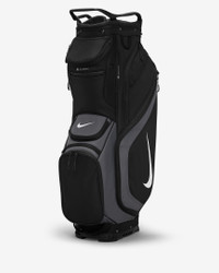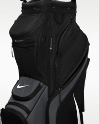 Enjoy the green in ultimate comfort with the Nike Performance Cart Golf Bag. This durable, lightweight design has a strap-through design that makes it easy to secure to your cart. A 14-way, full-length divider helps you stay organized, while a water-resistant rain hood offers coverage for your clubs in wet weather. Benefits - An insulated pocket helps keep food and beverages cold. - Utility webbing makes it easy to stash and access accessories. Product Details - 100% polyester - Spot clean - Imported - Shown: Black/Iron Grey/White - Style: N1002004-061
