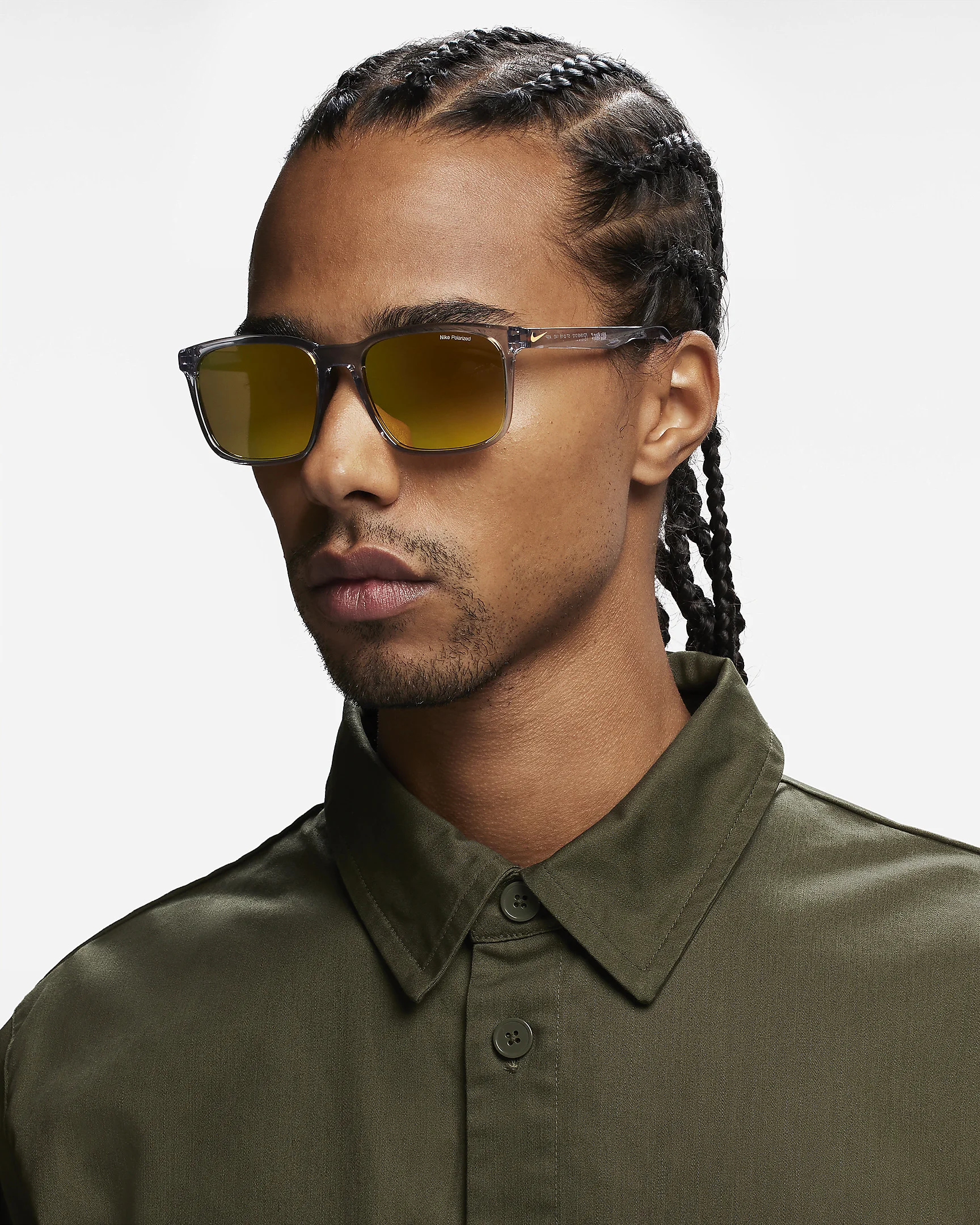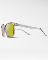 Show off your bold style from your sunglasses to your sneakers. The Nike Rave Sunglasses sport highly reflective polarized lenses designed to help reduce glare whether you're hitting the open road for that weekend adventure or adding a few extra miles to your summer run. Benefits - 4-base flat lens and slim profile provide everyday coverage. - Polarized lenses help to reduce glare. Product Details - Injected frame material is derived from at least 45% castor bean oil - 100% UVA/UVB protection - Imported - Shown: Wolf Grey - Style: NKFD1849-012
