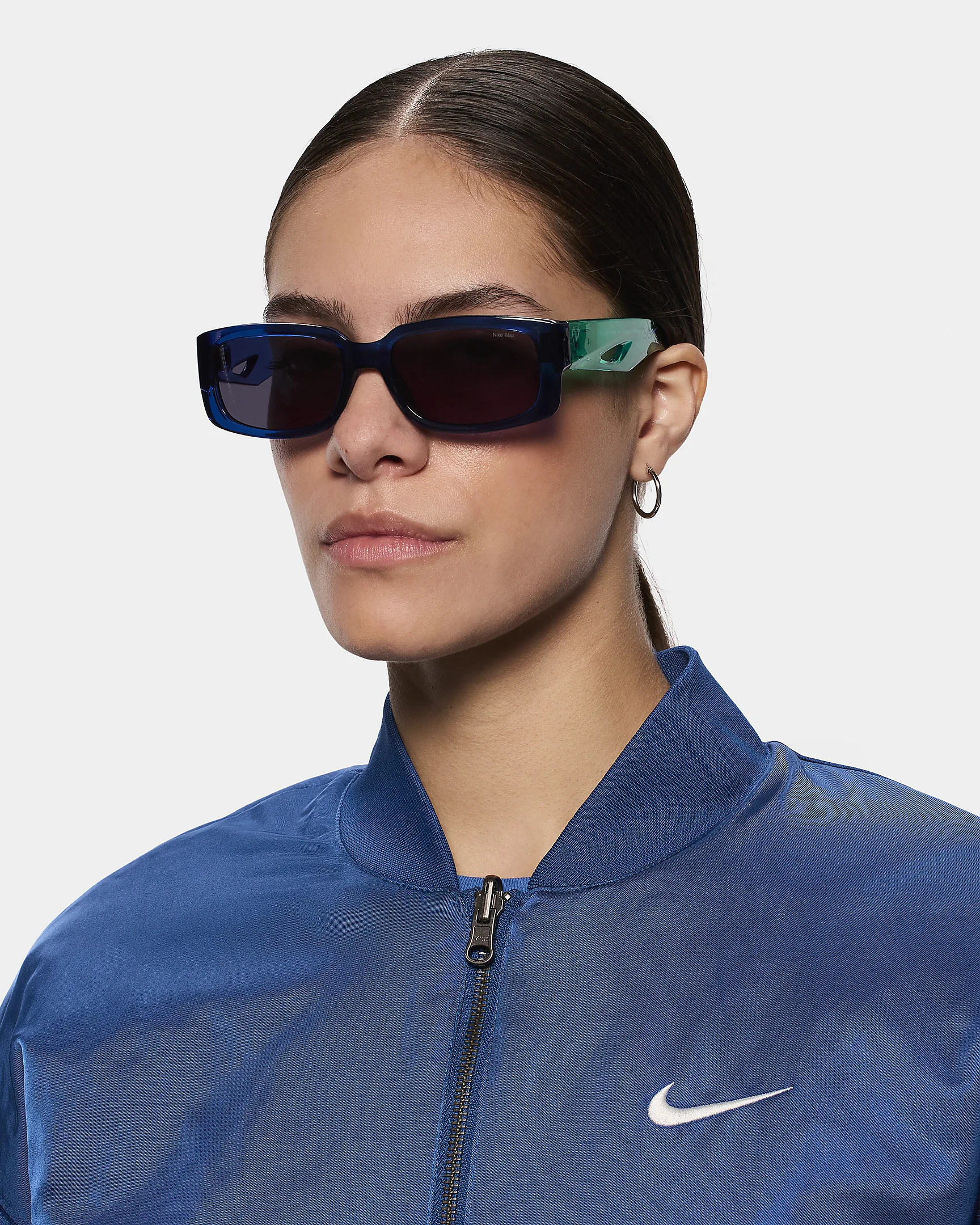 Meet the Nike Variant I. Made with mismatched details and a chunky, rectangular frame, these shades perfectly combine your sporty attitude and bold, streetwear aesthetic. Bonus: they’re made from at least 20% recycled content by weight. Benefits - 4-base flat lens and slim profile provide everyday coverage. - These frames are made with at least 20% recycled content, by weight (excluding lenses). Product Details - Prescription-friendly frame - 100% UVA/UVB protection - Shown: Midnight Navy - Style: NKEV24013-410