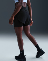 Don't let em' see you sweat. These Universa shorts are equipped with Nike Stealth Evaporation Tech to conceal moisture. The ultrasmooth midweight fabric of the biker shorts layer feels cool and sleek, while a woven outer layer adds coverage. Benefits - Nike Stealth Evaporation technology helps reduce sweat marks by dispersing moisture so the fabric dries quickly and stays looking fresh. - Pocket at right fits most phones. Product Details - 5" inseam - Bonded hem - Swoosh logo - Tight: 77% polyester/23% spandex. Overlay: 86% polyester/14% spandex. - Machine wash - Imported - Shown: Black/Anthracite/Black/Dark Smoke Grey - Style: HJ2261-010 SIZE & FIT Model is wearing size S and is 5′8″173cm Standard fit: easy and traditional