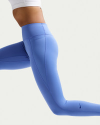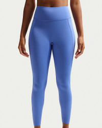 Don't let 'em see you sweat. We elevated the design of our Universa leggings to look smooth and help conceal sweat, thanks to a no-seam front and moisture-concealing technology. Their midweight, ultrasmooth fabric offers squat-proof stretch that helps lift and shape. Plus, an updated waistband resists rolling, so you can go all out with confidence. Product Details - 77% polyester/23% spandex - Laser-cut hem - Silicone Swoosh logo on left calf - Machine wash - Imported - Not intended for use as Personal Protective Equipment (PPE) - Shown: Sapphire/Bright Blue/Deep Night - Style: HQ6813-570 SIZE & FIT Model is wearing size S and is 5'11"179cm Tight fit: snug and form-fitting Medium support: feels ke a snug hold to keep everything in place 78 length: hits at ankle High-Waisted: sits at or above your natural waist for more coverage