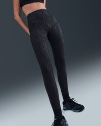 Don't let 'em see you sweat. We elevated the design of our Universa leggings to look smooth and help conceal sweat, thanks to a no-seam front and moisture-concealing technology. Their midweight, ultrasmooth fabric offers squat-proof stretch that helps lift and shape. Plus, an updated waistband resists rolling, so you can go all out with confidence. Product Details - Silicone Swoosh logo on left calf - 77% polyester/23% spandex - Machine wash - Imported - Shown: Black/Anthracite/Dark Smoke Grey - Style: HV2256-010 SIZE & FIT Model is wearing size S and is 5′10″178cm Tight fit: snug and form-fitting Medium support: feels ke a snug hold to keep everything in place 78 length: hits at ankle High-Waisted: sits at or above your natural waist for more coverage