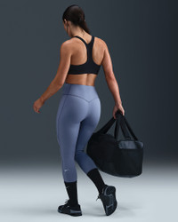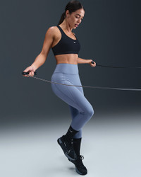 Don't let 'em see you sweat. We elevated the design of our Universa leggings to look smooth and help conceal sweat, thanks to a no-seam front and moisture-concealing technology. Their midweight, ultrasmooth fabric offers squat-proof stretch that helps lift and shape. Plus, an updated waistband resists rolling, so you can go all out with confidence. Product Details - 77% polyester/23% spandex - Laser-cut hem - Silicone Swoosh logo on left calf - Machine wash - Imported - Not intended for use as Personal Protective Equipment (PPE) - Shown: World Indigo/Sanded Purple/Celestine Blue - Style: HQ6813-499 SIZE & FIT Model is wearing size S and is 5′6″168cm Tight fit: snug and form-fitting Medium support: feels ke a snug hold to keep everything in place 78 length: hits at ankle High-Waisted: sits at or above your natural waist for more coverage