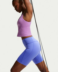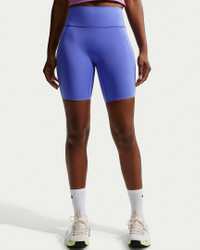 Don't let 'em see you sweat. We elevated our Universa biker shorts with moisture-concealing technology. Their midweight, ultrasmooth fabric offers squat-proof stretch that lifts and shapes. Plus, an updated waistband resists rolling, so you can go all out with confidence. Product Details - Body/Panels lining: 77% polyester/23% spandex - Swoosh logo on left hip - Not intended for use as Personal Protective Equipment (PPE) - Machine wash - Imported - Shown: Sapphire/Bright Blue/Deep Night - Style: HQ6823-570 SIZE & FIT Model is wearing size S and is 5′11″180cm Tight fit: snug and form-fitting Medium support: feels ke a snug hold to keep everything in place High-Waisted: sits at or above your natural waist for more coverage