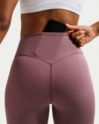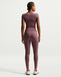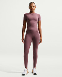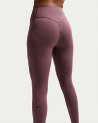 Don't let 'em see you sweat. We elevated the design of our Universa leggings to look smooth and help conceal sweat, thanks to a no-seam front and moisture-concealing technology. Their midweight, ultrasmooth fabric offers squat-proof stretch that helps lift and shape. Plus, an updated waistband resists rolling, so you can go all out with confidence. Product Details - Body: 77% polyester/23% spandex - Laser-cut hem - Reflective Swoosh logo on left hip - Not intended for use as Personal Protective Equipment (PPE) - Machine wash - Imported - Shown: Tattoo/Tattoo/Burgundy Crush - Style: HQ6810-502 SIZE & FIT Tight fit: snug and form-fitting Medium support: feels ke a snug hold to keep everything in place Fl length: hits below ankle High-Waisted: sits at or above your natural waist for more coverage