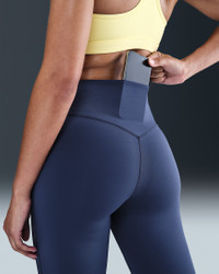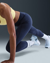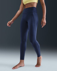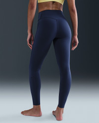 Don't let 'em see you sweat. We elevated the design of our Universa leggings to look smooth and help conceal sweat, thanks to a no-seam front and moisture-concealing technology. Their midweight, ultrasmooth fabric offers squat-proof stretch that helps lift and shape. Plus, an updated waistband resists rolling, so you can go all out with confidence. Product Details - Body: 77% polyester/23% spandex - Laser-cut hem - Reflective Swoosh logo on left hip - Not intended for use as Personal Protective Equipment (PPE) - Machine wash - Imported - Shown: Midnight Navy/Midnight Navy/Dark Obsidian - Style: HQ6810-410 SIZE & FIT Model is wearing size S and is 5′9″175cm Tight fit: snug and form-fitting Medium support: feels ke a snug hold to keep everything in place Fl length: hits below ankle High-Waisted: sits at or above your natural waist for more coverage