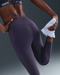 Don't let 'em see you sweat. We elevated the design of our Universa leggings to look smooth and help conceal sweat, thanks to a no-seam front and moisture-concealing technology. Their midweight, ultrasmooth fabric offers squat-proof stretch that helps lift and shape. Plus, an updated waistband resists rolling, so you can go all out with confidence. Product Details - 77% polyester/23% spandex - Laser-cut hem - Silicone Swoosh logo on left calf - Machine wash - Imported - Not intended for use as Personal Protective Equipment (PPE) - Shown: Thunder Grey/Thunder Grey/Dark Shadow - Style: HQ6813-036 SIZE & FIT Model is wearing size S and is 5′11″180cm Tight fit: snug and form-fitting Medium support: feels ke a snug hold to keep everything in place 78 length: hits at ankle High-Waisted: sits at or above your natural waist for more coverage