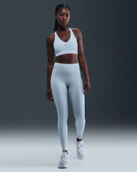 Don't let 'em see you sweat. Our Universa sports bra is made with Nike Stealth Evaporation Tech that conceals moisture. Midweight and ultrasmooth, this sleek bra gives you a snug hold and offers a smooth fit with sculpted pads and low-profile design lines. Product Details - Gloss silicone Swoosh logo - Body: 77% polyester/23 % spandex. Lining: 84% polyester/16% spandex. Pad: 100% polyurethane. - Machine wash - Imported - Shown: Celestine Blue/Chambray/Work Blue - Style: IB9830-441 SIZE & FIT Model is wearing size S Model height: 5′8″173cm Model bust: 31″79cm Tight fit: snug and form-fitting Medium support: feels ke a snug hold to keep everything in place