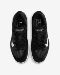Get to every single ball with blistering speed in the Vapor 12. With a reworked upper and traction pattern, it's lighter and more responsive than the 11. And we brought back Air Zoom cushioning, so you can always be on the attack. More Benefits - Full midfoot fit band allows you to pull the laces tighter to enhance the fit and enable faster cuts. - Midsole foam in between the plastic and rubber, which wasn’t on the Vapor 11, helps keep you light on your feet. Product Details - Designed for wear on hard court surfaces - Cushioned insole - Shown: Black/Dark Smoke Grey/White - Style: FV5554-001