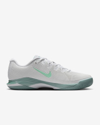 Get to every single ball with blistering speed in the Vapor 12. With a reworked upper and traction pattern, it's lighter and more responsive than the 11. And we brought back Air Zoom cushioning, so you can always be on the attack. More Benefits - Full midfoot fit band allows you to pull the laces tighter to enhance the fit and enable faster cuts. - Midsole foam in between the plastic and rubber, which wasn’t on the Vapor 11, helps keep you light on your feet. Product Details - Designed for wear on hard court surfaces - Cushioned insole - Shown: White/Cannon/Mint Foam - Style: FV5554-106