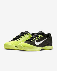 Get to every single ball with blistering speed in the Vapor 12. With a reworked upper and traction pattern, it's lighter and more responsive than the 11. And we brought back Air Zoom cushioning, so you can always be on the attack. This special design sends you out to the Aussie coastline, where the scenic surf waves mix sweet and sour tones. More Benefits - Full midfoot fit band allows you to pull the laces tighter to enhance the fit and enable faster cuts. - Midsole foam in between the plastic and rubber, which wasn’t on the Vapor 11, helps keep you light on your feet. Product Details - Designed for wear on hard court surfaces - Cushioned insole - Shown: Black/Light Lemon Twist/Blue Ribbon Heather/White - Style: IB6554-001