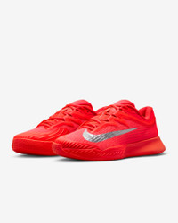 When the late-summer daylight drops, and the city that won’t stop starts to stir, lace up in this Vapor Pro 3. With springy Air Zoom cushioning and a new rubber compound that makes the shoe lighter than previous Vapors, it’s primed to last to match point—even in the city that never sleeps. More Benefits - Supportive forefoot piece has a deeper flex notch to improve flexibility. - Full midfoot fit band helps you pull the laces tighter to enhance the fit and enable faster cuts. Product Details - Designed for wear on hard court surfaces - Durable, breathable mesh on upper - Rubber toe tip - Shown: Bright Crimson/Metallic Silver - Style: HQ2550-600