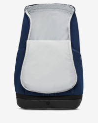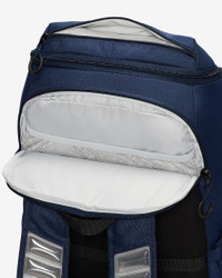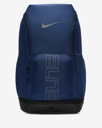 The Varsity Elite backpack holds everything you need to hoop. A large main compartment fits up to a full-size basketball. Exterior front pocket allows quick access to small items and a bottom pocket keeps sweaty clothes and dirty shoes separate. A trolley sleeve allows you to attach it to your luggage when traveling for those away games. Benefits - Shoulder straps feature Air Max technology for enhanced comfort. - Top zippered pocket is plush lined to protect tech and valuables. - Internal laptop compartment fits up to a 16” laptop. Product Details - 12" W x 19" H x 9" D - Expandable side pocket - 100% polyester - Spot clean - Imported - Shown: Midnight Navy/Black/Iron Grey - Style: HM9965-410