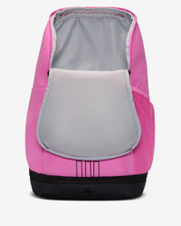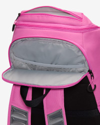 The Varsity Elite backpack holds everything you need to hoop. A large main compartment fits up to a full-size basketball. Exterior front pocket allows quick access to small items and a bottom pocket keeps sweaty clothes and dirty shoes separate. A trolley sleeve allows you to attach it to your luggage when traveling for those away games. Benefits - Shoulder straps feature Air Max technology for enhanced comfort. - Top zippered pocket is plush lined to protect tech and valuables. - Internal laptop compartment fits up to a 16” laptop. Product Details - 12" W x 19" H x 9" D - Expandable side pocket - 100% polyester - Spot clean - Imported - Shown: Playful Pink/Black/Black - Style: HM9965-675
