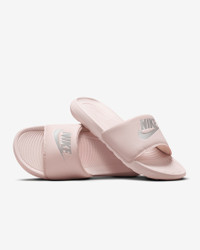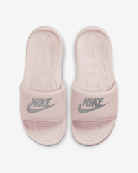 From the beach to gardening to sitting on the couch, the Nike Victori One perfects a classic design. Delivering lightweight comfort that’s easy to wear, it features new softer, more responsive foam. The contoured grip pattern helps cradle and hold your foot in place. Benefits - The new, softer foam and mechanical cushioning adds unbelievable responsiveness and comfort that lasts. - The contoured footbed cradles and supports your foot while its grip pattern helps keep your foot in place. - The rolled top edge of the strap adds to the comfort while its thick padding feels soft. - The new strap design adds additional space, accommodating more foot sizes. - The outsole features a new pattern for added traction. Product Details - Bold "NIKE" and Swoosh designs on the strap lets you rep your brand - Shown: Barely Rose/Barely Rose/Metallic Silver - Style: CN9677-600
