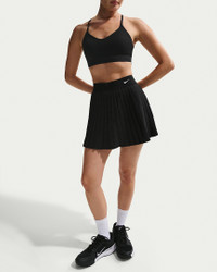 Court-ready style you can count on every day. Stretchy, sweat-wicking shorts line this skirt for added comfort and coverage. Pockets on the shorts provide quick storage for balls and daily essentials. Benefits - Nike Dri-FIT technology moves sweat away from your skin for quicker evaporation, helping you stay dry and comfortable. - Stretchy built-in shorts have pockets on both legs. - Exposed elastic waistband feels snug and comfortable. Product Details - Screen-printed Swoosh logo - Body/gusset lining: 100% polyester. Tight: 79% polyester/21% spandex. Elastic: 86% polyester/14% spandex. Panels lining: 79% polyester/21% spandex. - Machine wash - Imported - Shown: Black/White - Style: HV9951-010 SIZE & FIT Model is wearing size S and is 5'7"170cm Standard fit: easy and traditional