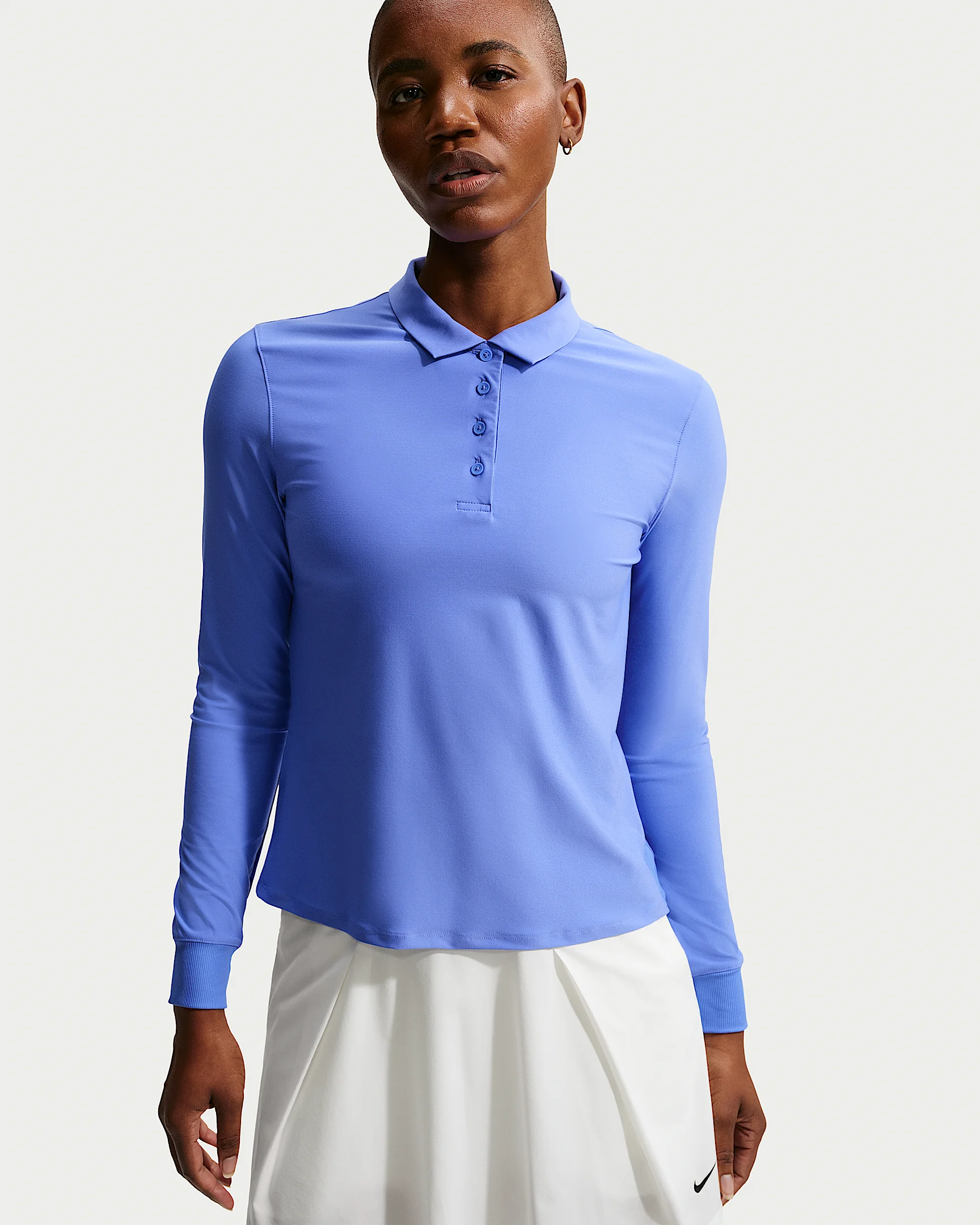 Made with super-smooth, ultra-stretchy fabric that dries quickly, this classic golf polo makes it easy to focus on your swing. Benefits - Nike Dri-FIT technology moves sweat away from your skin for quicker evaporation, helping you stay dry and comfortable. - Ribbed insets at hem stretch through your full range of motion. Product Details - Body: 79% polyester/21% spandex. Rib: 88% polyester/12% spandex. - 4-button placket - Ribbed cuffs and hem insets - Embroidered Swoosh logo on left arm - Machine wash - Imported - Shown: Sapphire/White - Style: FQ1570-570 SIZE & FIT Model is wearing size S and is 5′11″180cm Standard fit: easy and traditional
